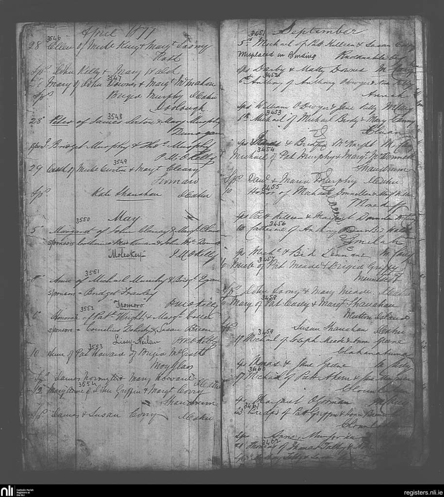 Kilmurry Ibricken; County of Clare; Diocese of Killaloe. Baptisms, Apr. 1877 to Sep. 1877