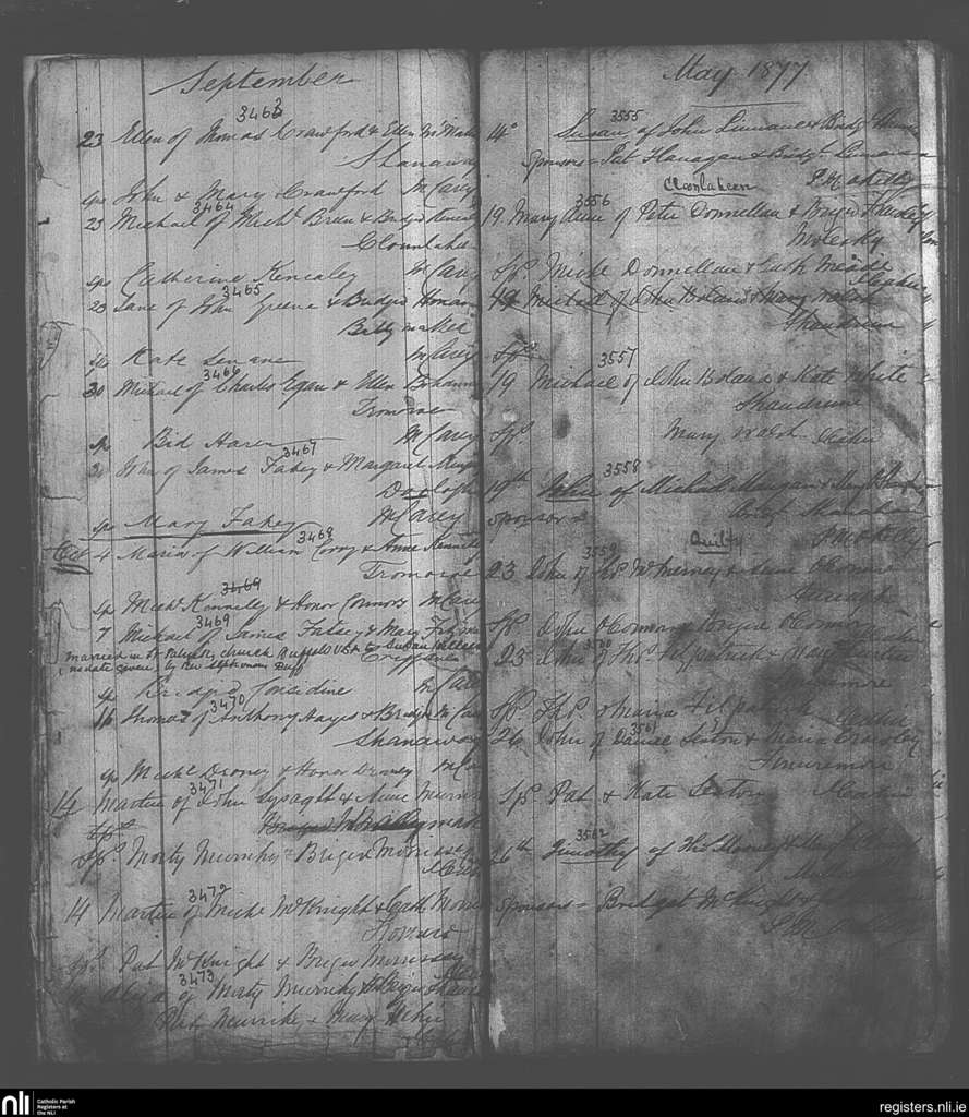 Kilmurry Ibricken; County of Clare; Diocese of Killaloe. Baptisms, May 1877 to Sep. 1877