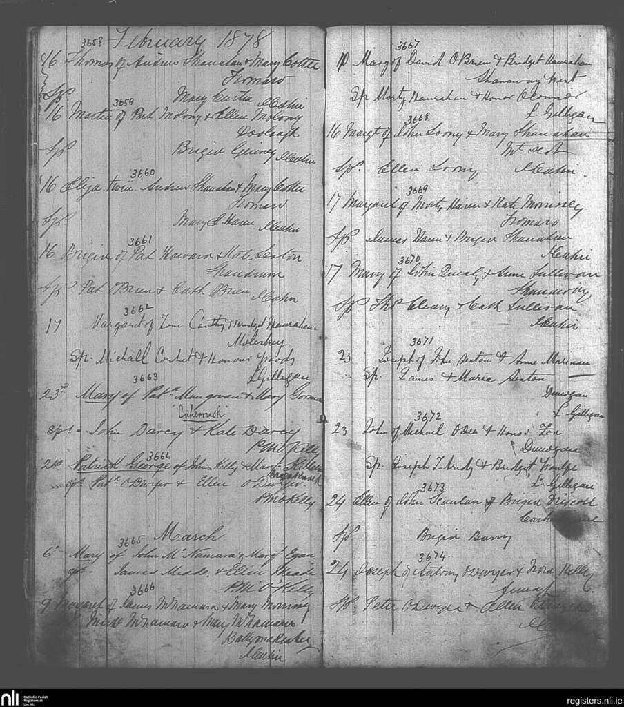 Kilmurry Ibricken; County of Clare; Diocese of Killaloe. Baptisms, Feb. 1878 to Mar. 1878