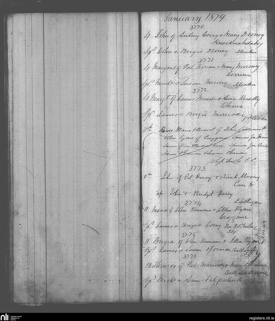 Kilmurry Ibricken; County of Clare; Diocese of Killaloe. Baptisms, Jan. 1879