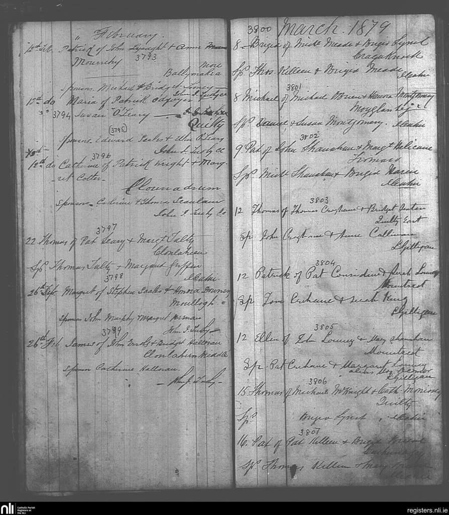 Kilmurry Ibricken; County of Clare; Diocese of Killaloe. Baptisms, Feb. 1879 to Mar. 1879