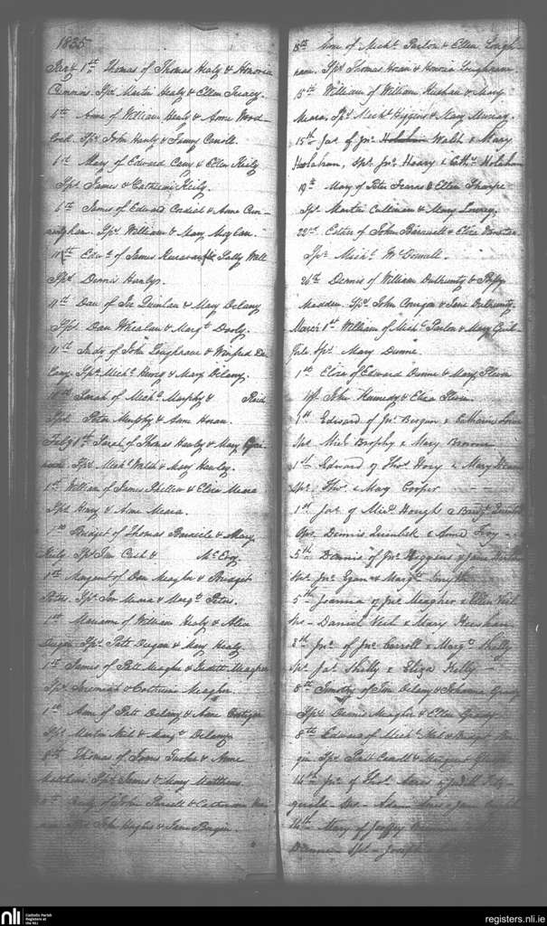 Kilcolman; County of Offaly; Diocese of Killaloe. Baptisms, Jan. 1835 to Mar. 1835