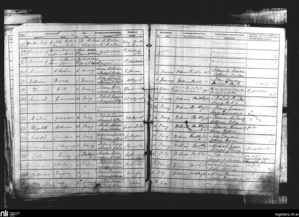 Kildysart; County of Clare; Diocese of Killaloe. Baptisms, Nov. 1874 to Feb. 1875