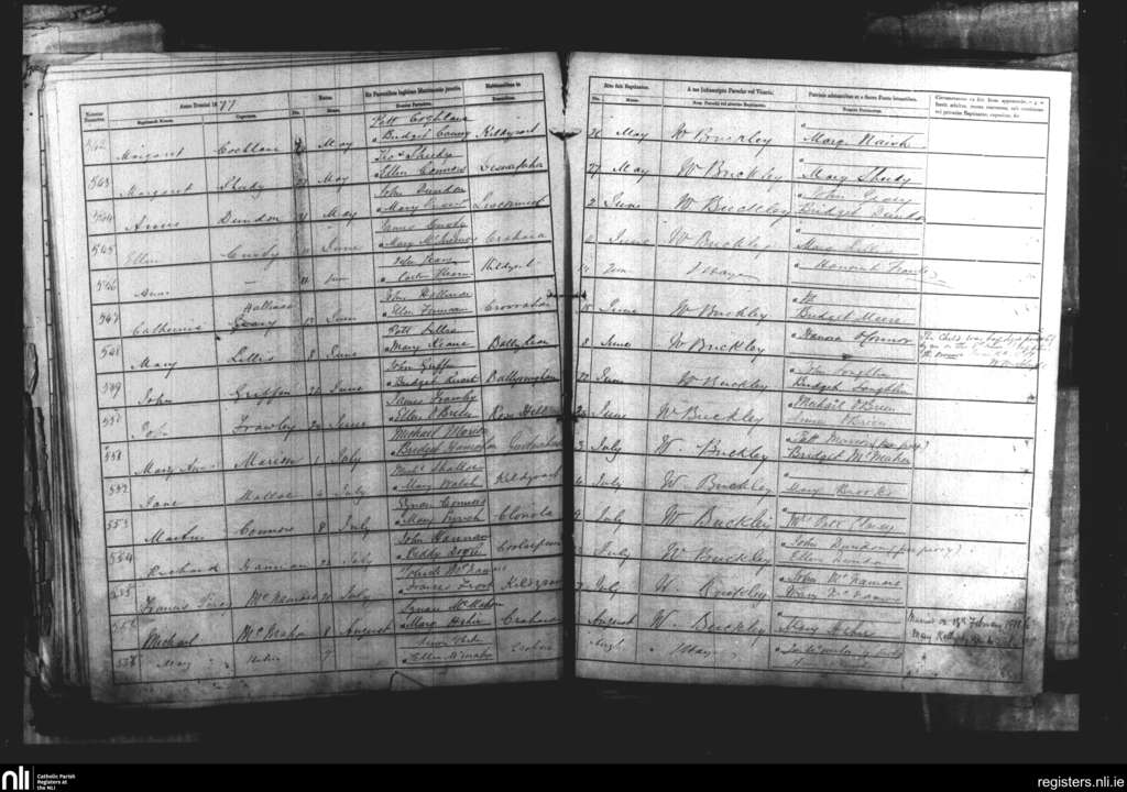 Kildysart; County of Clare; Diocese of Killaloe. Baptisms, May 1877 to Aug. 1877