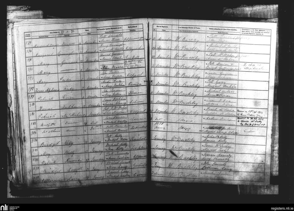 Kildysart; County of Clare; Diocese of Killaloe. Baptisms, Nov. 1877 to Feb. 1878