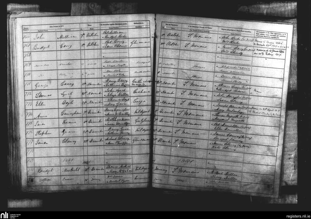 Kildysart; County of Clare; Diocese of Killaloe. Baptisms, Oct. 1880 to Jan. 1881