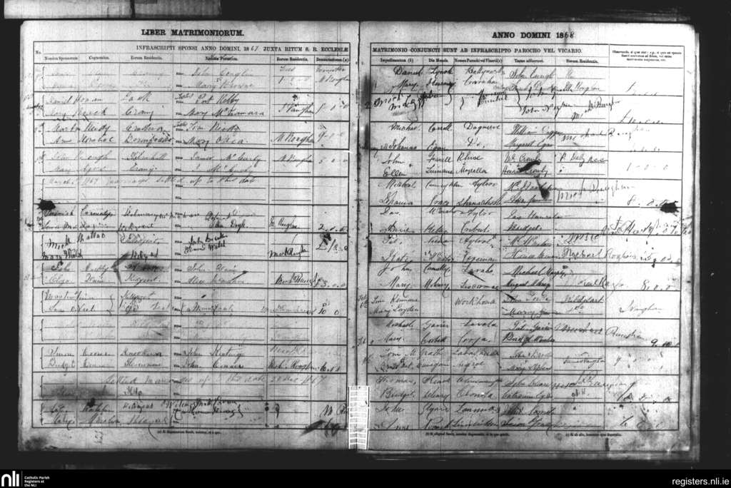 Kildysart; County of Clare; Diocese of Killaloe. Marriages, Jan. 1868 to Feb. 1868