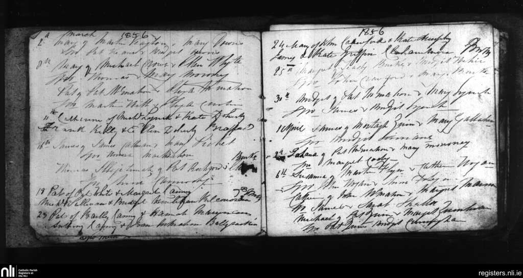 Milltownmalbay; County of Clare; Diocese of Killaloe. Baptisms, Mar. 1856 to Apr. 1856