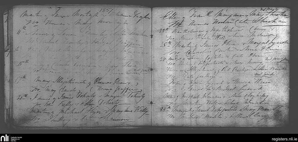 Milltownmalbay; County of Clare; Diocese of Killaloe. Baptisms, Nov. 1857