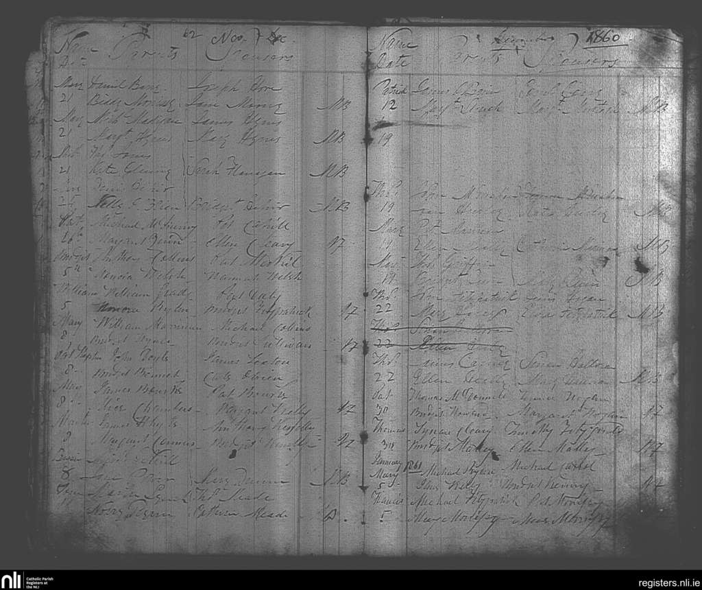 Milltownmalbay; County of Clare; Diocese of Killaloe. Baptisms, Nov. 1860 to Jan. 1861