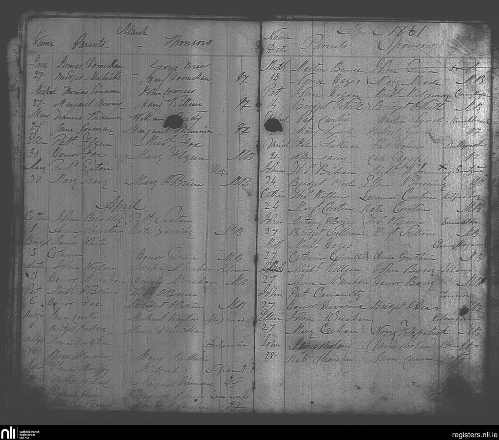 Milltownmalbay; County of Clare; Diocese of Killaloe. Baptisms, Mar. 1861 to Apr. 1861