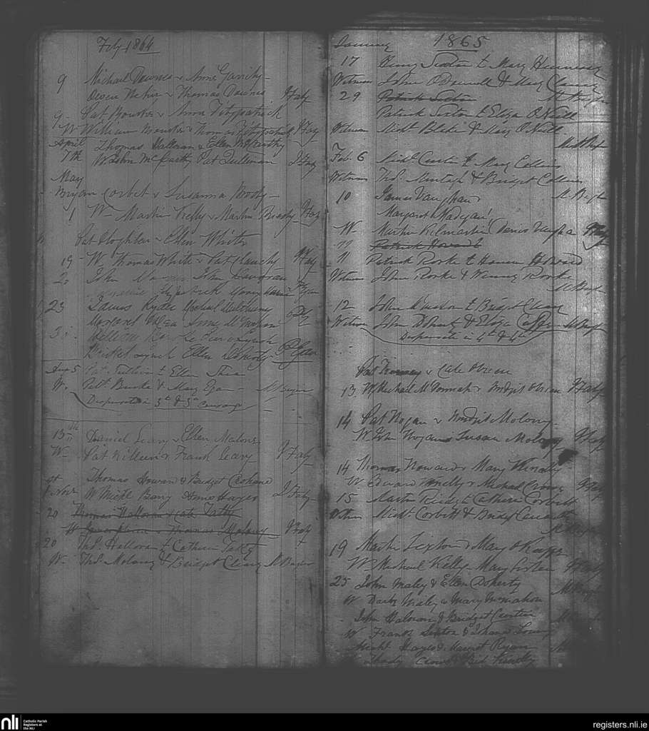 Milltownmalbay; County of Clare; Diocese of Killaloe. Marriages, Feb. 1864 to Feb. 1865