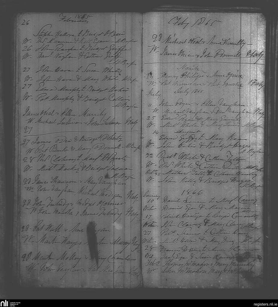 Milltownmalbay; County of Clare; Diocese of Killaloe. Marriages, Feb. 1865 to Feb. 1866