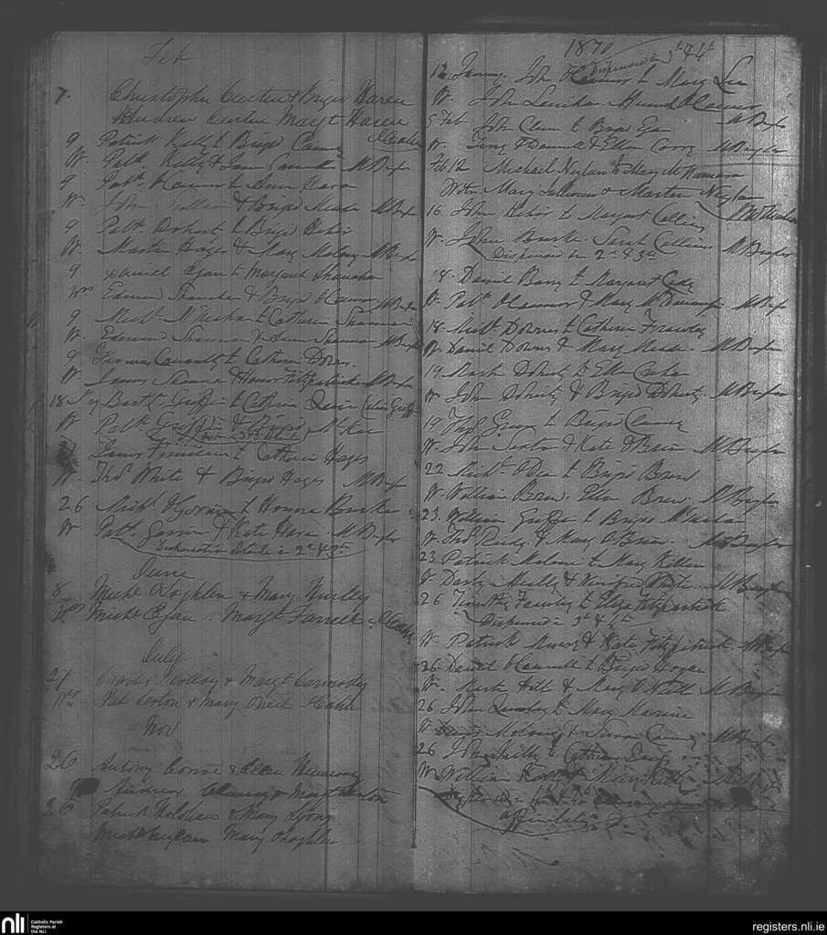 Milltownmalbay; County of Clare; Diocese of Killaloe. Marriages, Feb. 1869 to Feb. 1870