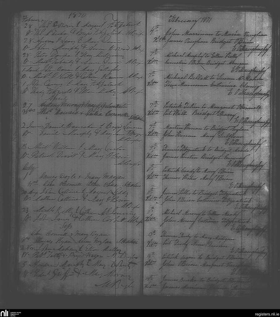 Milltownmalbay; County of Clare; Diocese of Killaloe. Marriages, Feb. 1870 to Feb. 1871