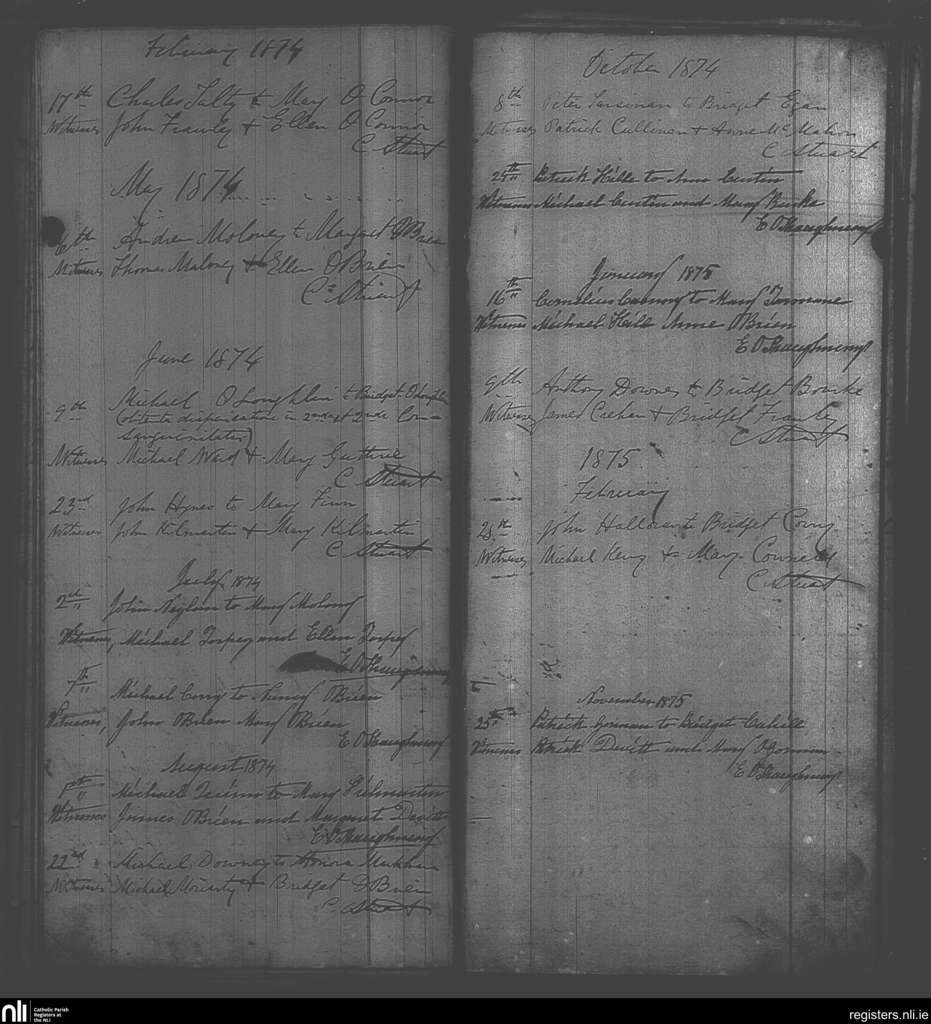 Milltownmalbay; County of Clare; Diocese of Killaloe. Marriages, Feb. 1874 to Nov. 1875
