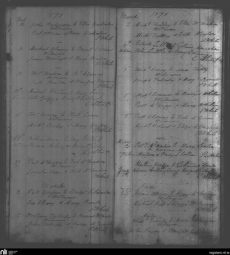 Milltownmalbay; County of Clare; Diocese of Killaloe. Marriages, Feb. 1878 to July 1878