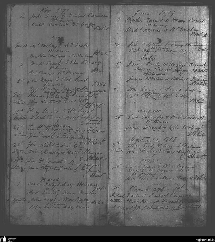Milltownmalbay; County of Clare; Diocese of Killaloe. Marriages, Nov. 1878 to Nov. 1879