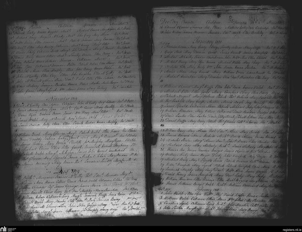 Middleton; County of Cork; Diocese of Cloyne. Baptisms, Sep. 1819 to Feb. 1820