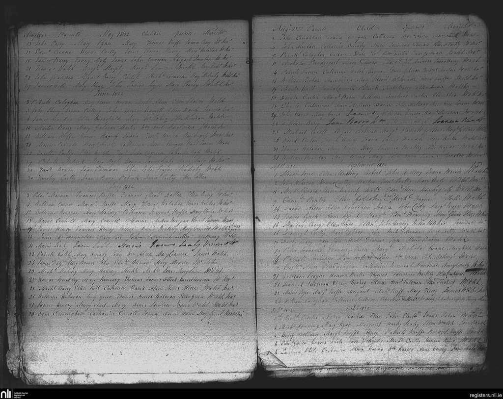 Middleton; County of Cork; Diocese of Cloyne. Baptisms, May 1822 to Oct. 1822