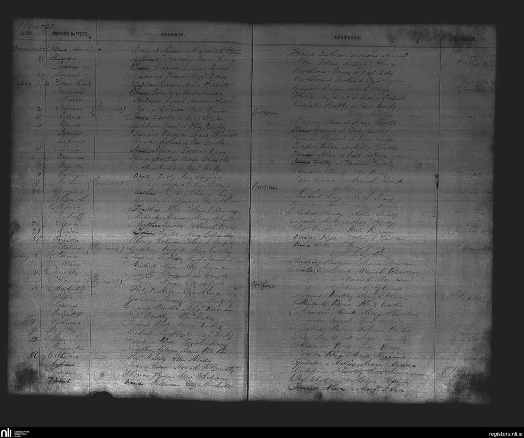 Middleton; County of Cork; Diocese of Cloyne. Baptisms, Dec. 1864 to Feb. 1865