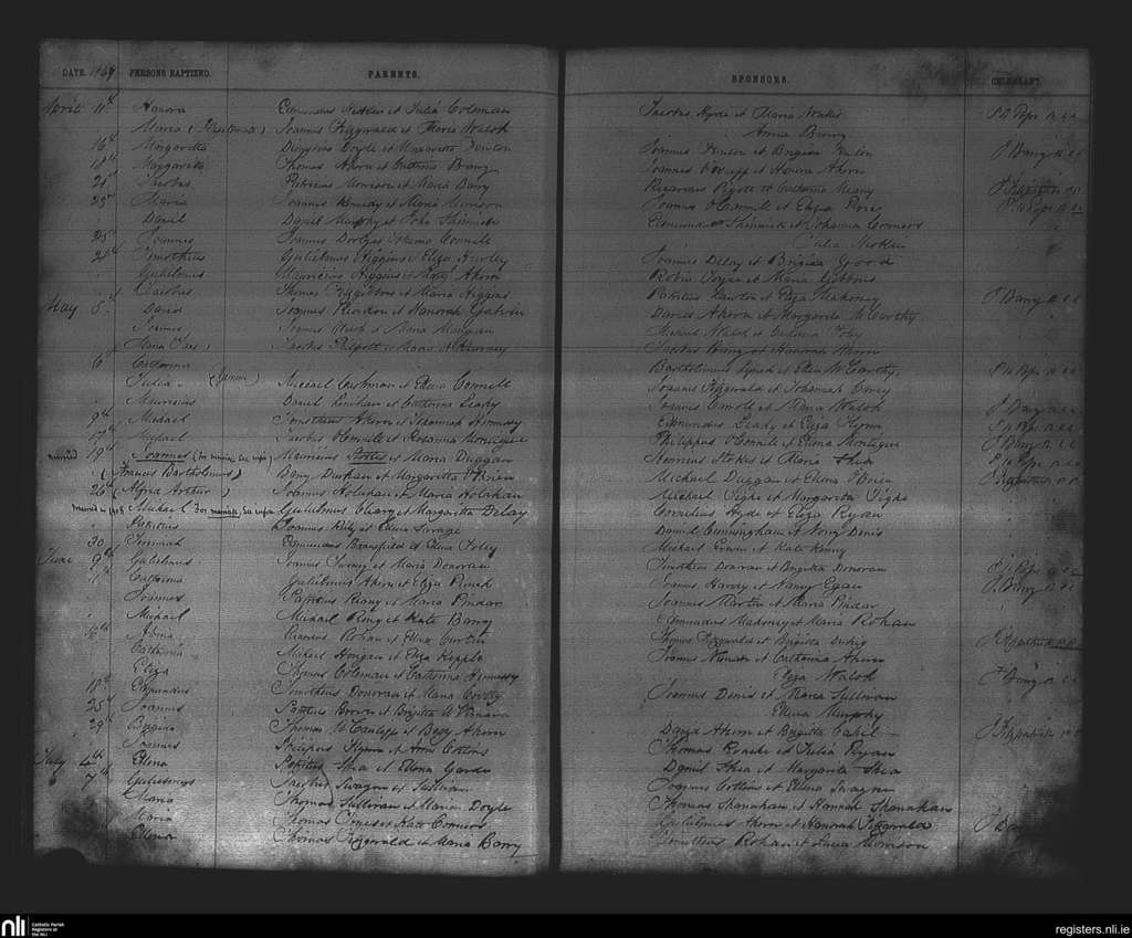 Middleton; County of Cork; Diocese of Cloyne. Baptisms, Apr. 1867 to July 1867