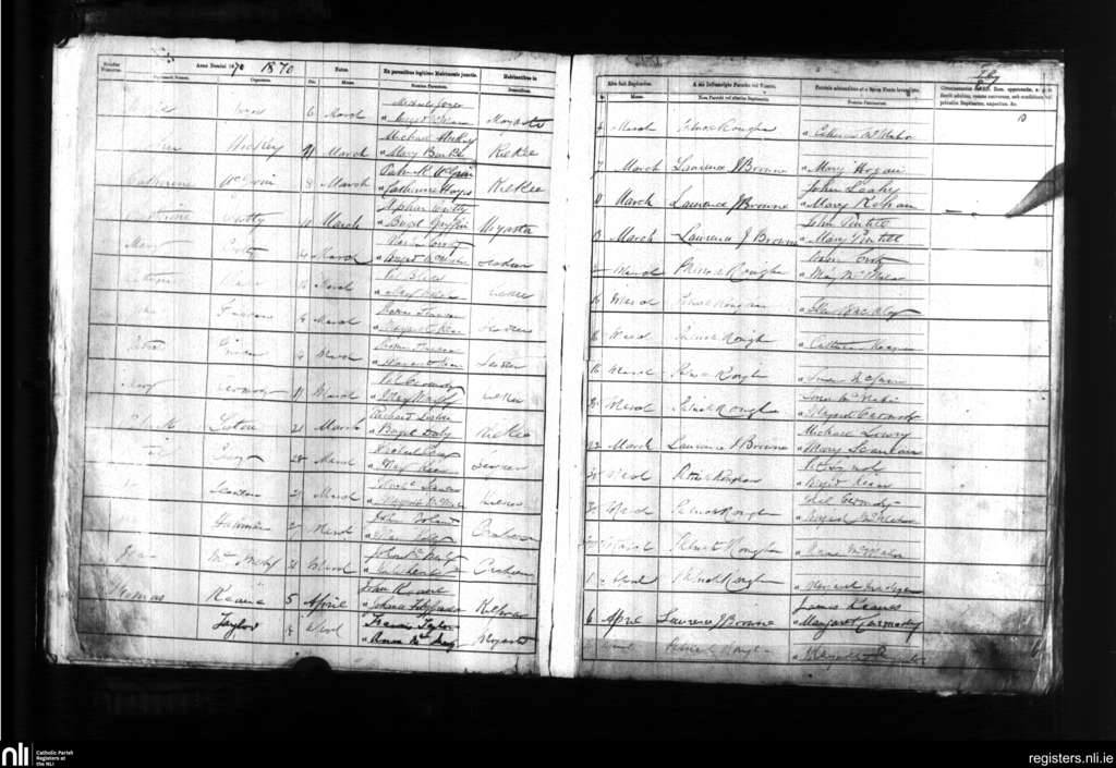 Kilkee; County of Clare; Diocese of Killaloe. Baptisms, Mar. 1870 to Apr. 1870