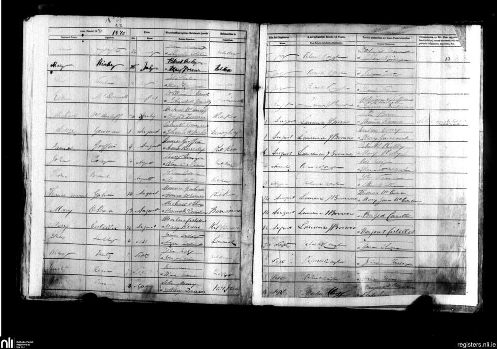Kilkee; County of Clare; Diocese of Killaloe. Baptisms, July 1870 to Sep. 1870