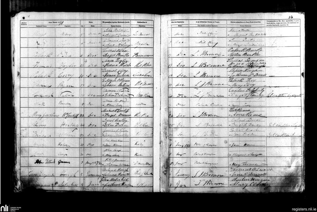 Kilkee; County of Clare; Diocese of Killaloe. Baptisms, Dec. 1871 to Jan. 1872
