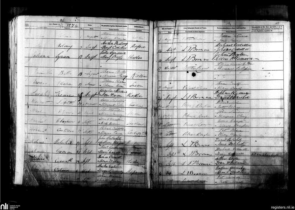 Kilkee; County of Clare; Diocese of Killaloe. Baptisms, Aug. 1874 to Oct. 1874