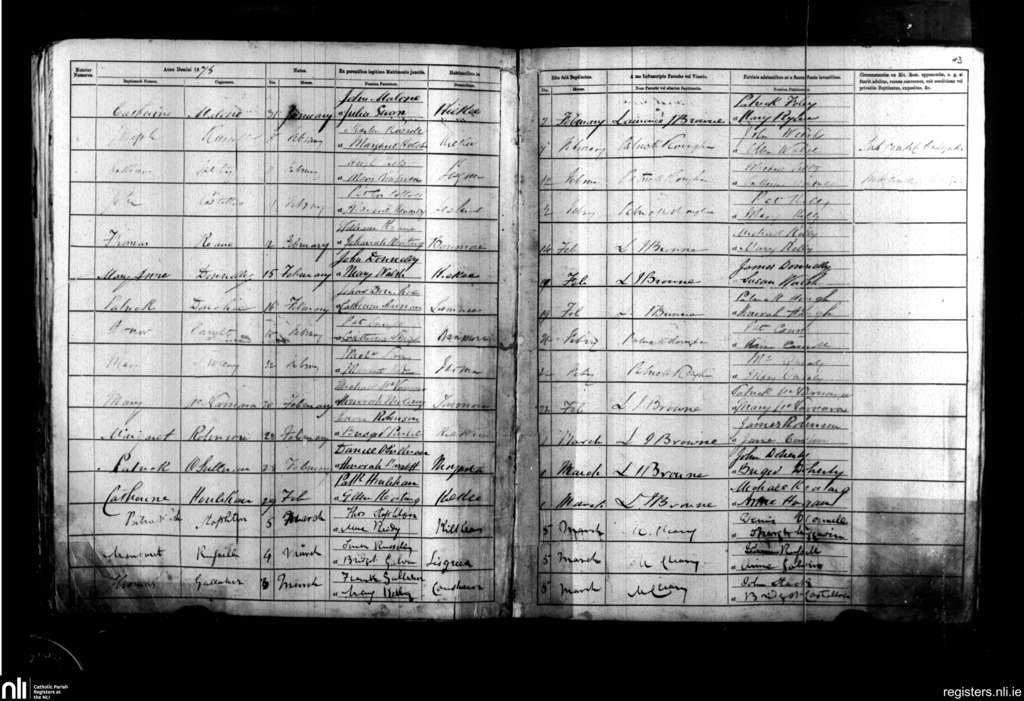 Kilkee; County of Clare; Diocese of Killaloe. Baptisms, Feb. 1875 to Mar. 1875