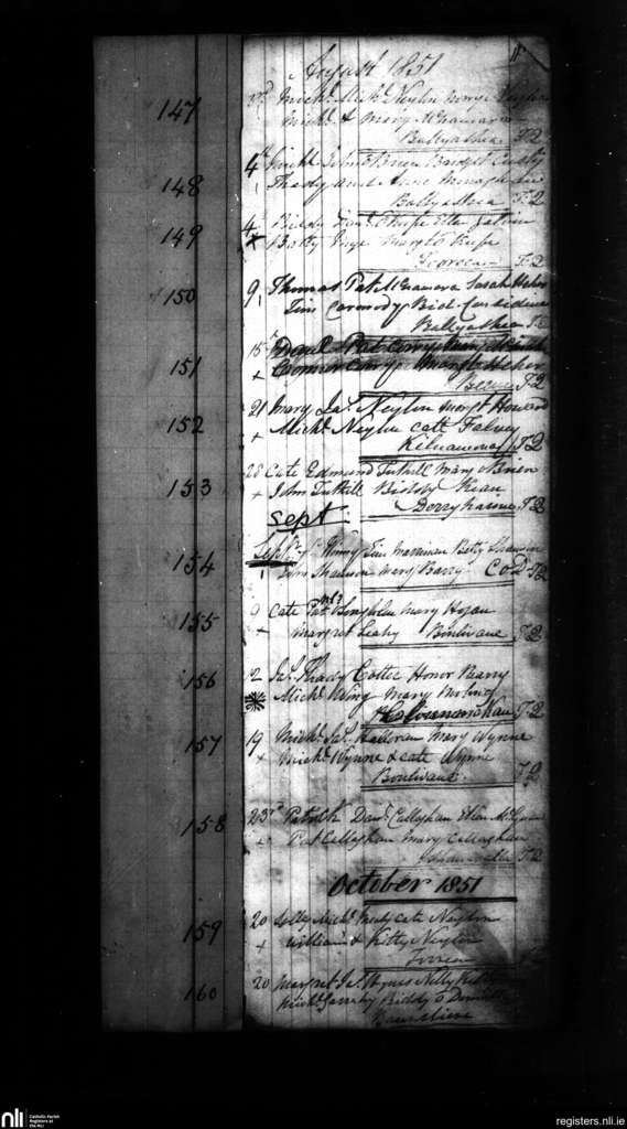 Inagh and Kilnamona; County of Clare; Diocese of Killaloe. Baptisms, Aug. 1851 to Oct. 1851