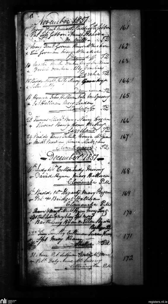 Inagh and Kilnamona; County of Clare; Diocese of Killaloe. Baptisms, Nov. 1851 to Dec. 1851