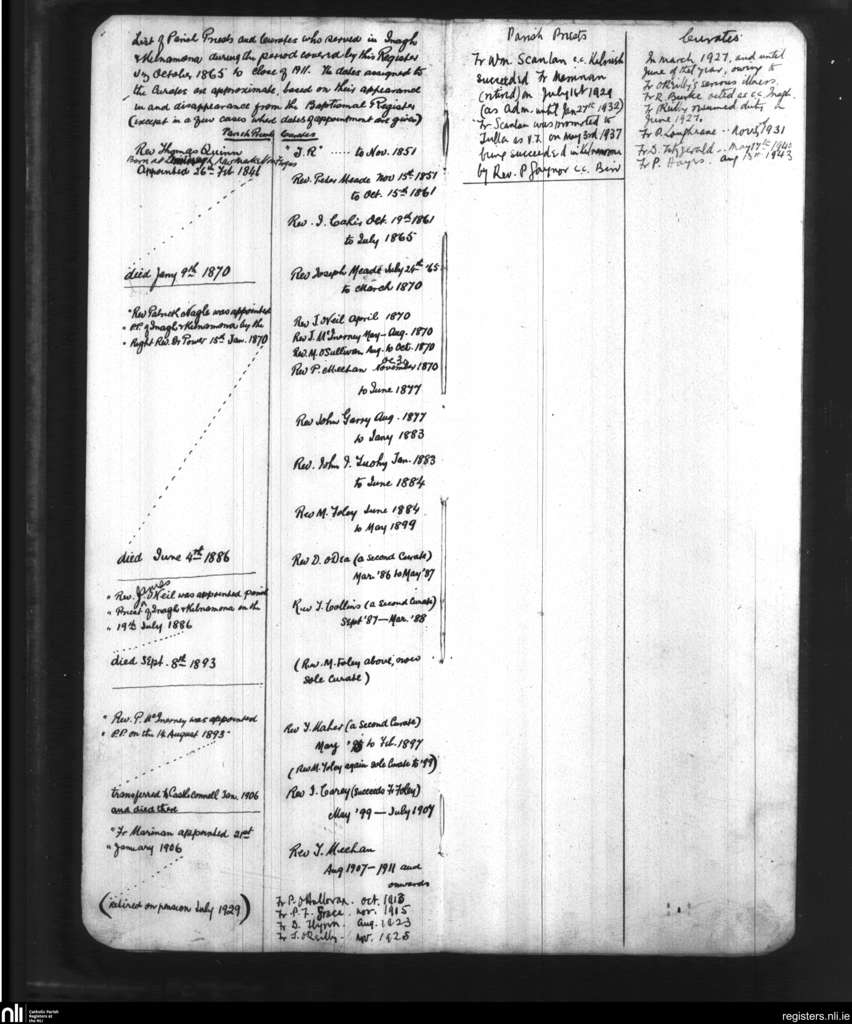 Inagh and Kilnamona; County of Clare; Diocese of Killaloe. Baptisms, Marriages