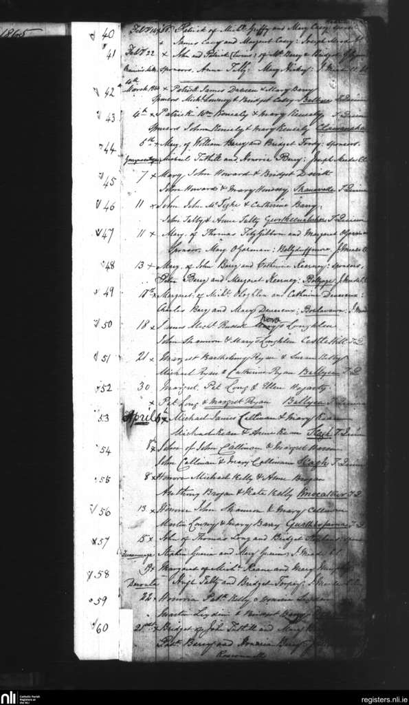 Inagh and Kilnamona; County of Clare; Diocese of Killaloe. Baptisms, Feb. 1866 to Apr. 1866