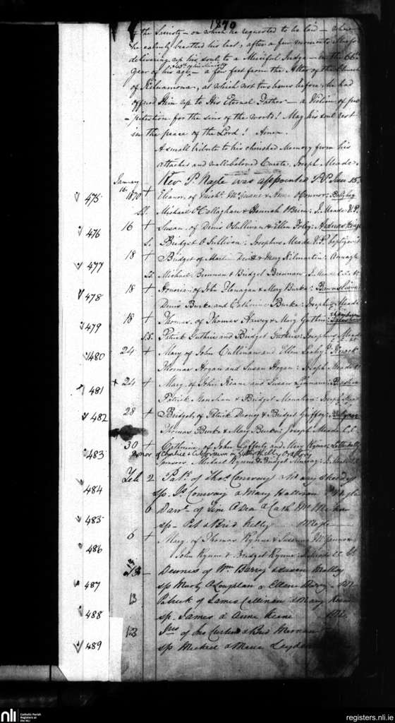 Inagh and Kilnamona; County of Clare; Diocese of Killaloe. Baptisms, Jan. 1870 to Feb. 1870