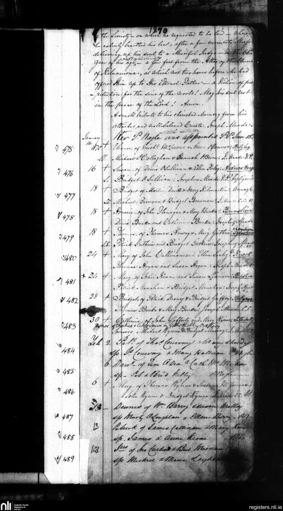 Inagh and Kilnamona; County of Clare; Diocese of Killaloe. Baptisms, Jan. 1870 to Feb. 1870