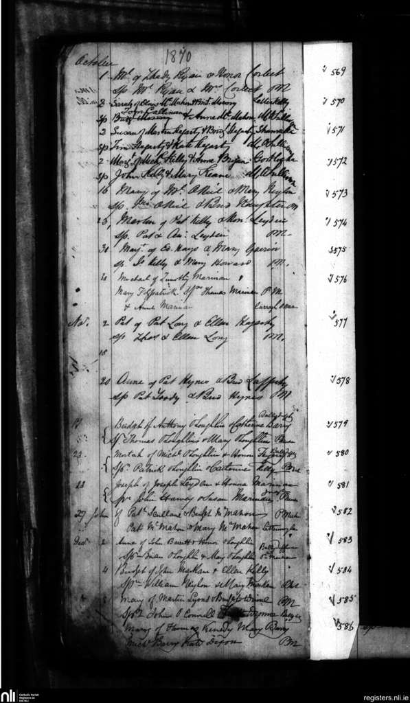 Inagh and Kilnamona; County of Clare; Diocese of Killaloe. Baptisms, Oct. 1870 to Dec. 1870