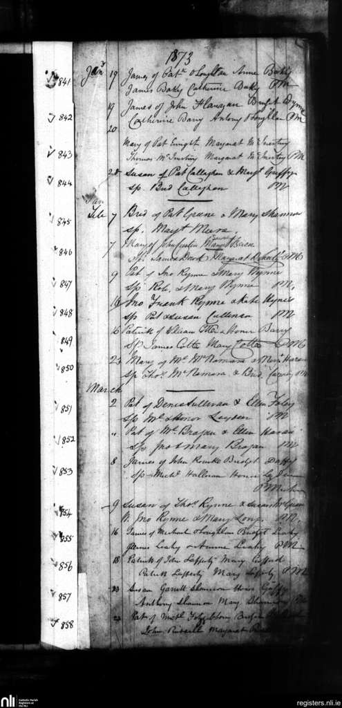Inagh and Kilnamona; County of Clare; Diocese of Killaloe. Baptisms, Jan. 1873 to Mar. 1873