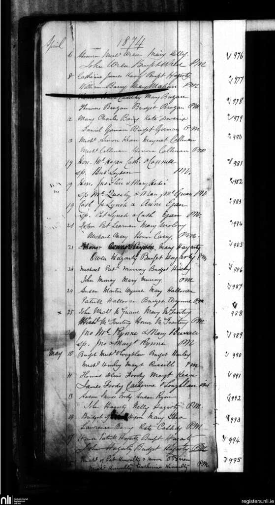 Inagh and Kilnamona; County of Clare; Diocese of Killaloe. Baptisms, Apr. 1874 to May 1874