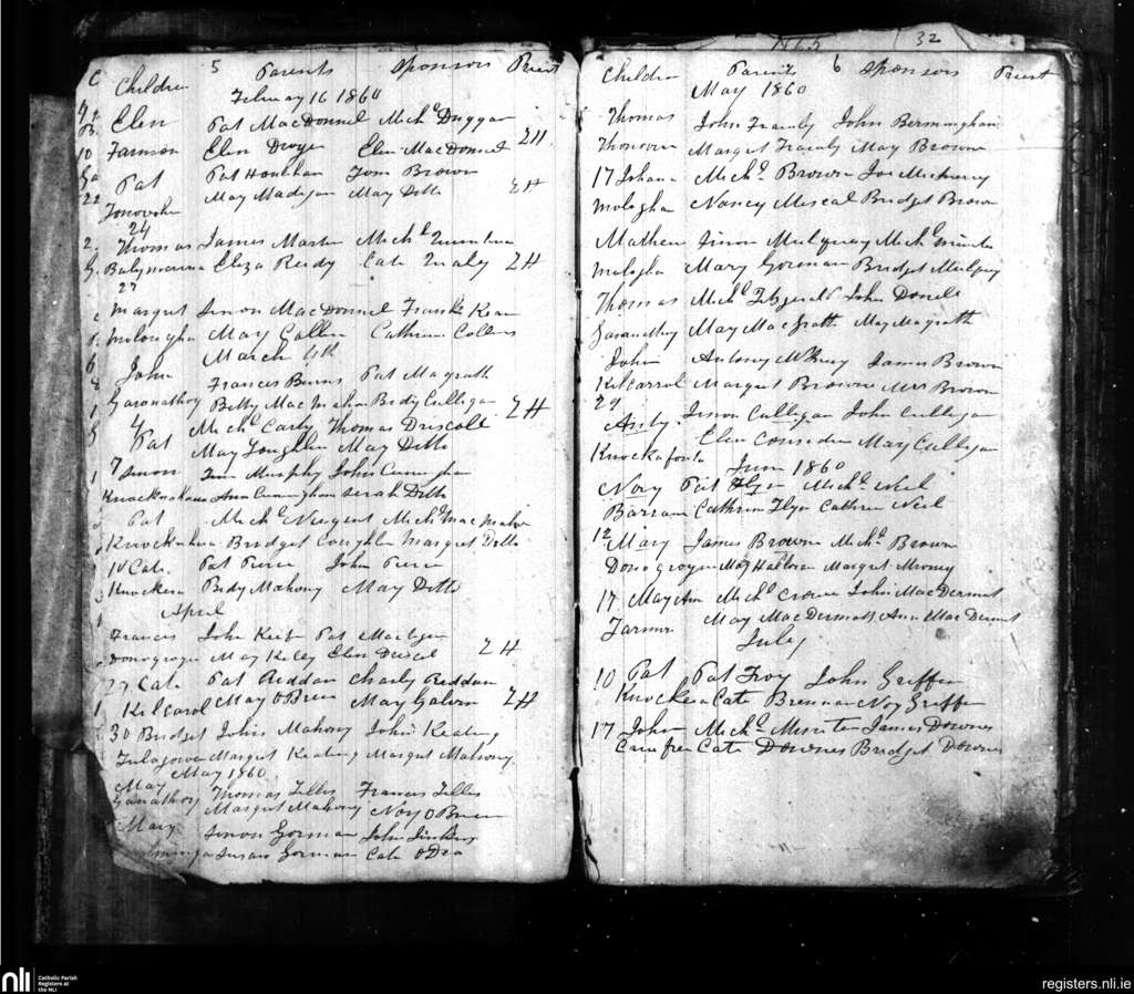 Knockera; County of Clare; Diocese of Killaloe. Baptisms, Feb. 1860 to July 1860