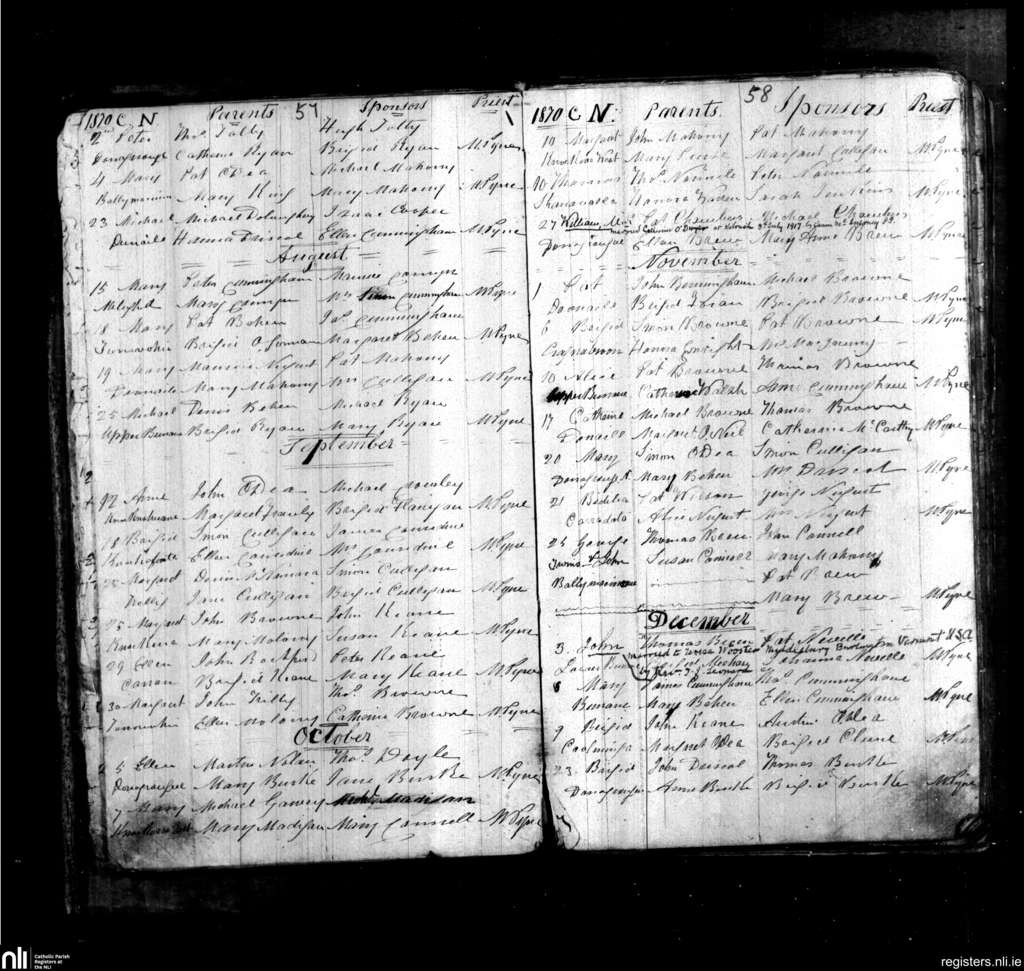 Knockera; County of Clare; Diocese of Killaloe. Baptisms, July 1870 to Dec. 1870