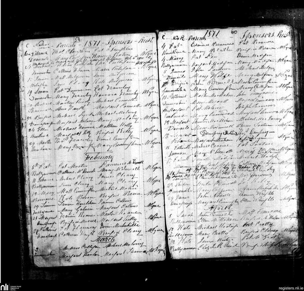 Knockera; County of Clare; Diocese of Killaloe. Baptisms, Jan. 1871 to Apr. 1871