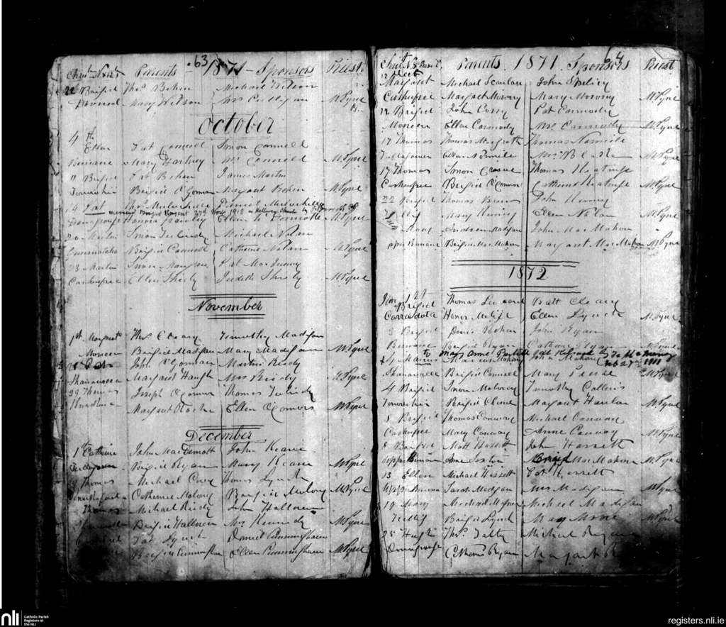 Knockera; County of Clare; Diocese of Killaloe. Baptisms, Apr. 1871 to Jan. 1872
