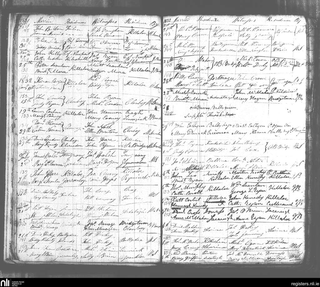 Killaloe; County of Clare; Diocese of Killaloe. Marriages, Oct. 1831 to Mar. 1832