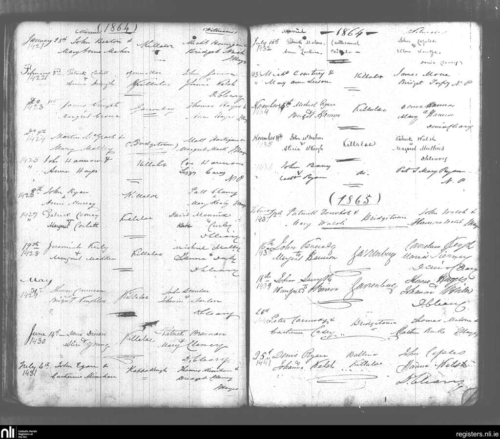 Killaloe; County of Clare; Diocese of Killaloe. Marriages, Jan. 1864 to Feb. 1865