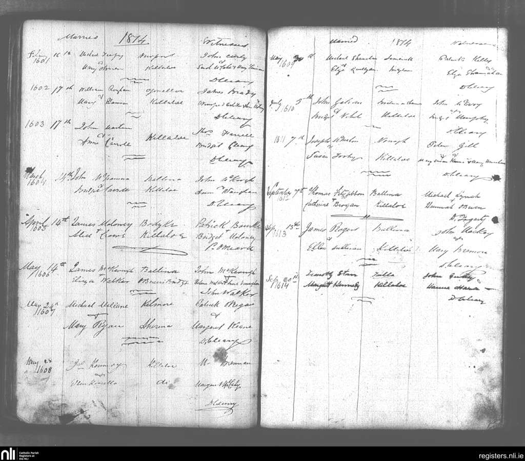 Killaloe; County of Clare; Diocese of Killaloe. Marriages, Feb. 1874 to Sep. 1874