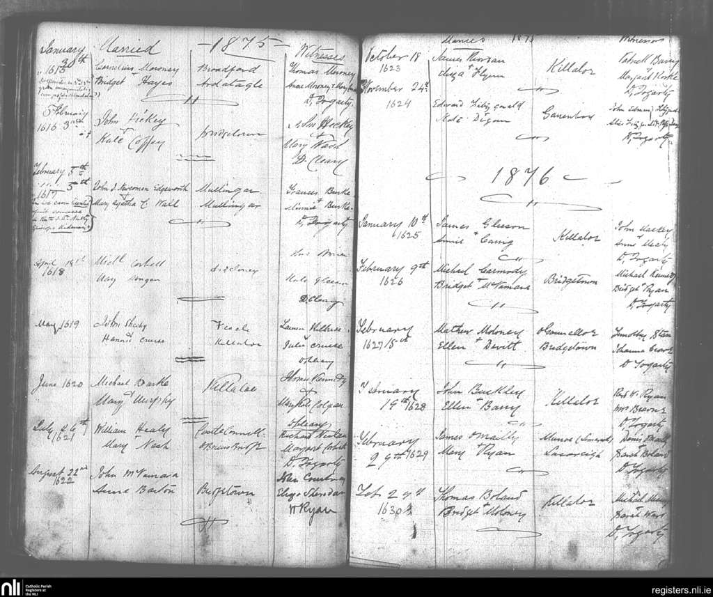 Killaloe; County of Clare; Diocese of Killaloe. Marriages, Jan. 1875 to Feb. 1876