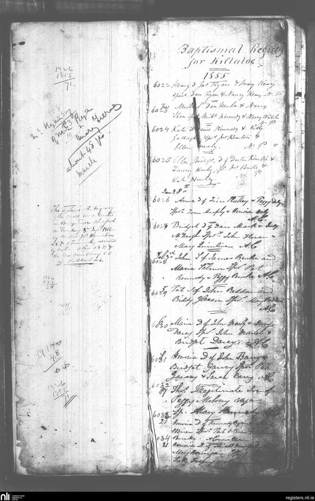 Killaloe; County of Clare; Diocese of Killaloe. Baptisms, Jan. 1855 to Feb. 1855
