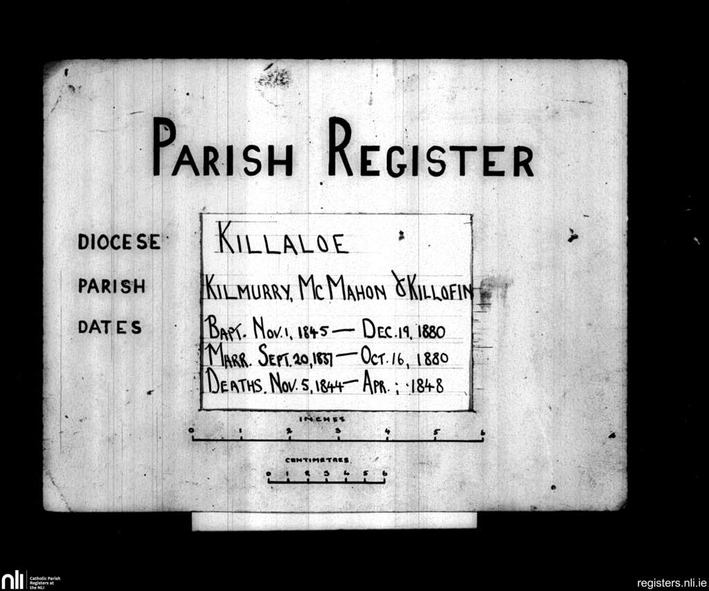 Kilmurry McMahon; County of Clare; Diocese of Killaloe. Baptisms, Marriages, Deaths